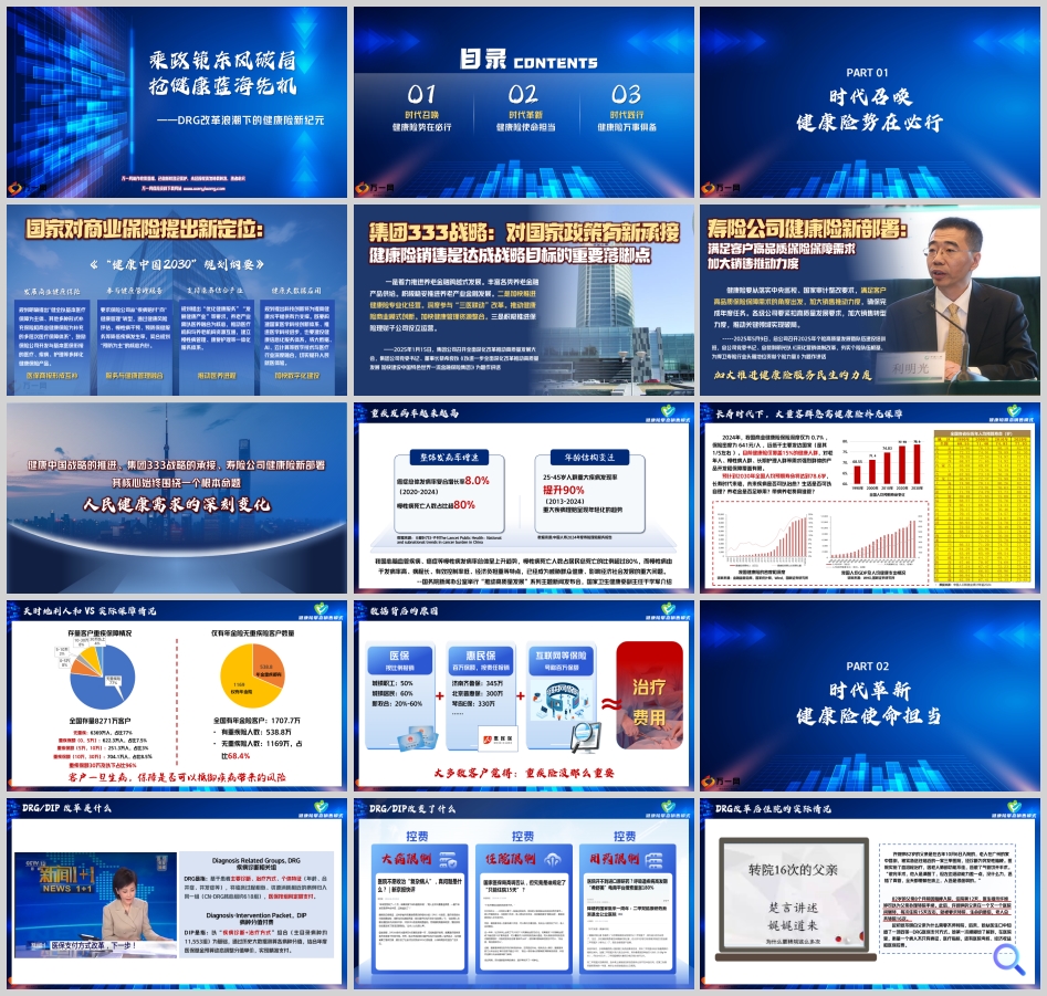 当前,我国医疗保障体系正经历一场深刻变革。随着DRG/DIP支付方式改革在全国范围内全面推进,健康保险行业迎来了前所未有的发展机遇。这场改革不仅重塑了医疗服务的支付模式,更重新定义了商业健康险在多层次医疗保障体系中的价值与定位。面对政策东风与市场蓝海,保险从业者需要深刻理解时代变革,把握发展先机,共同开启健康险的新纪元。