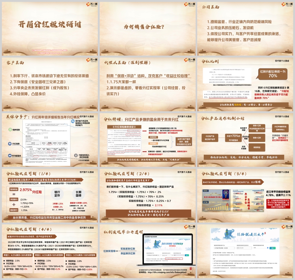 客户永远会问“比你收益高的有没有?”用“1.75大家都一样,2.5以上看实力”一句话锁喉:保底部分人人平等,浮动部分看分红实现率,而分红实现率=公司经营能力的外化。既把比较引到公司基本面,又把话题拉到“长期主义”,天然过滤“短期高收益”客群。