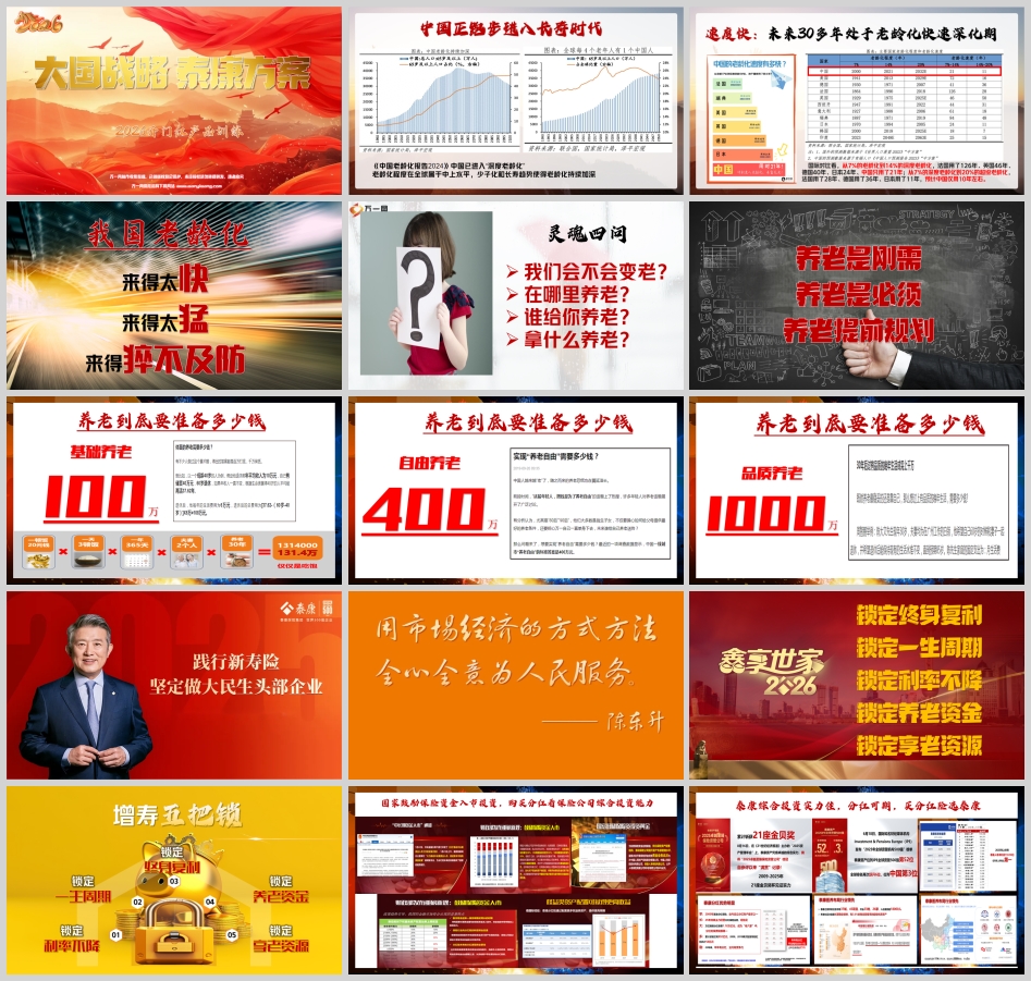 在大国战略的指引下,通过泰康方案,我们正在帮助每一个家庭绘制一幅清晰、稳定、充满希望的金色养老蓝图。让我们肩负起这份责任,以专业和热情,将这份关乎未来幸福的“泰康方案”传递给更多客户,共同迎接2026,共同迎接我们每一个人都值得拥有的、有尊严、有品质的长寿时代。